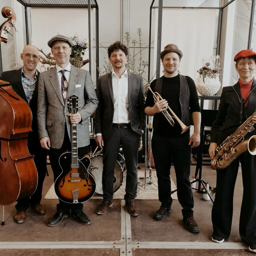 The quintett is dedicated to the swingin´ sound of the 30s and 40s. With the big classics from the bandbooks of the small groups of Benny Goodmann, Coleman Hawkins and Count Basie they invite their audience to fill the dancefloor all night long!